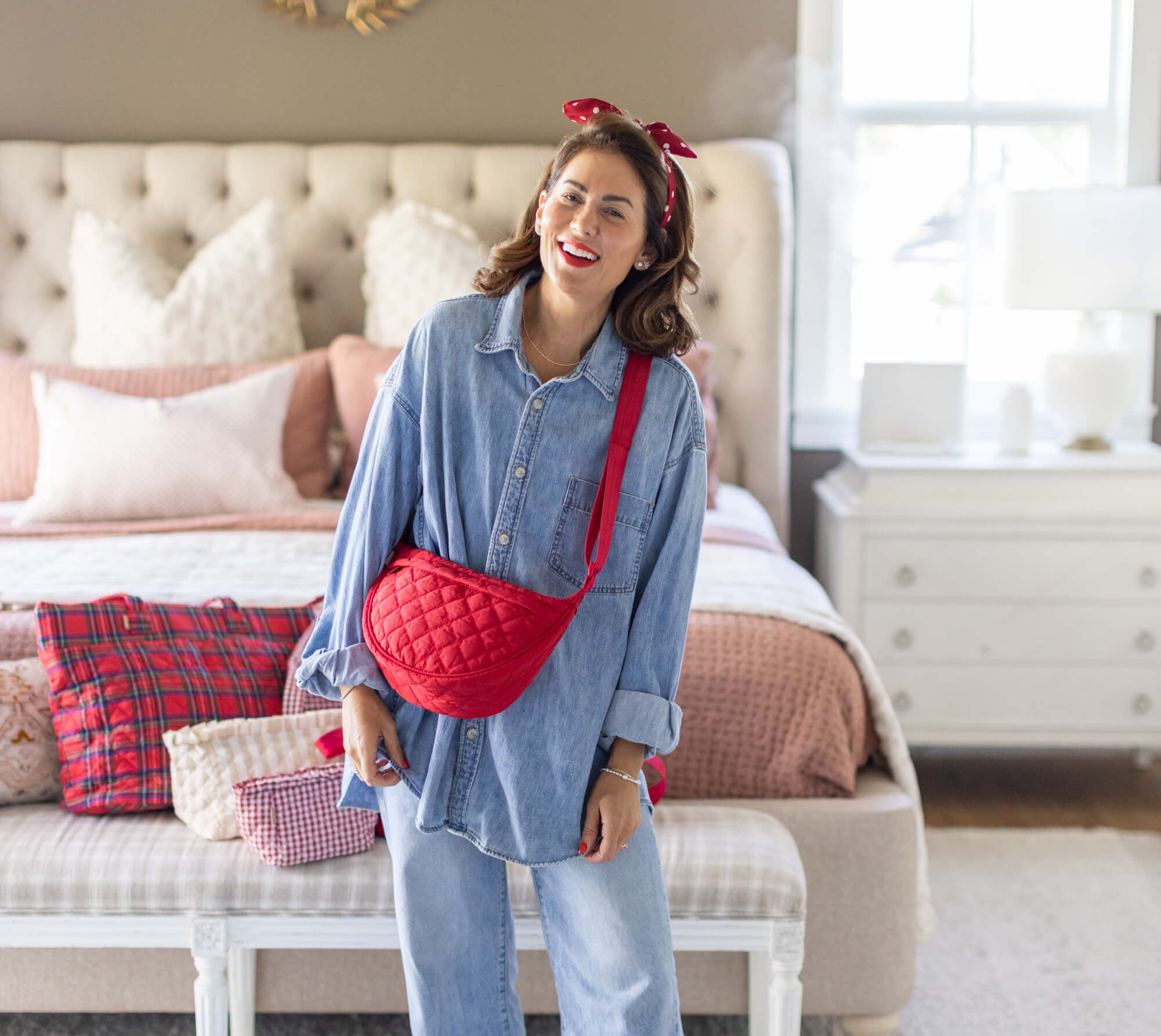 You’ve been asking…and it’s finally happening!! Our first-ever holiday collection with Jillian Harris is here! Designing this collection over the past year with Jillian has been such a special project and we are so proud of how beautifully everything came together. From the classic quilted textures you know and love to brand new winter-inspired styles, every piece was thoughtfully created for real life… travel, work, errands, or a night out. The bow clutch that Jillian wore to her wedding is launching in red, just in time for holiday parties! The collection is ethically made, and the lining is created from 100% recycled plastic water bottles. Plus, they’re launching just in time for the holidays so you can check a few names off your gift list (or treat yourself!).